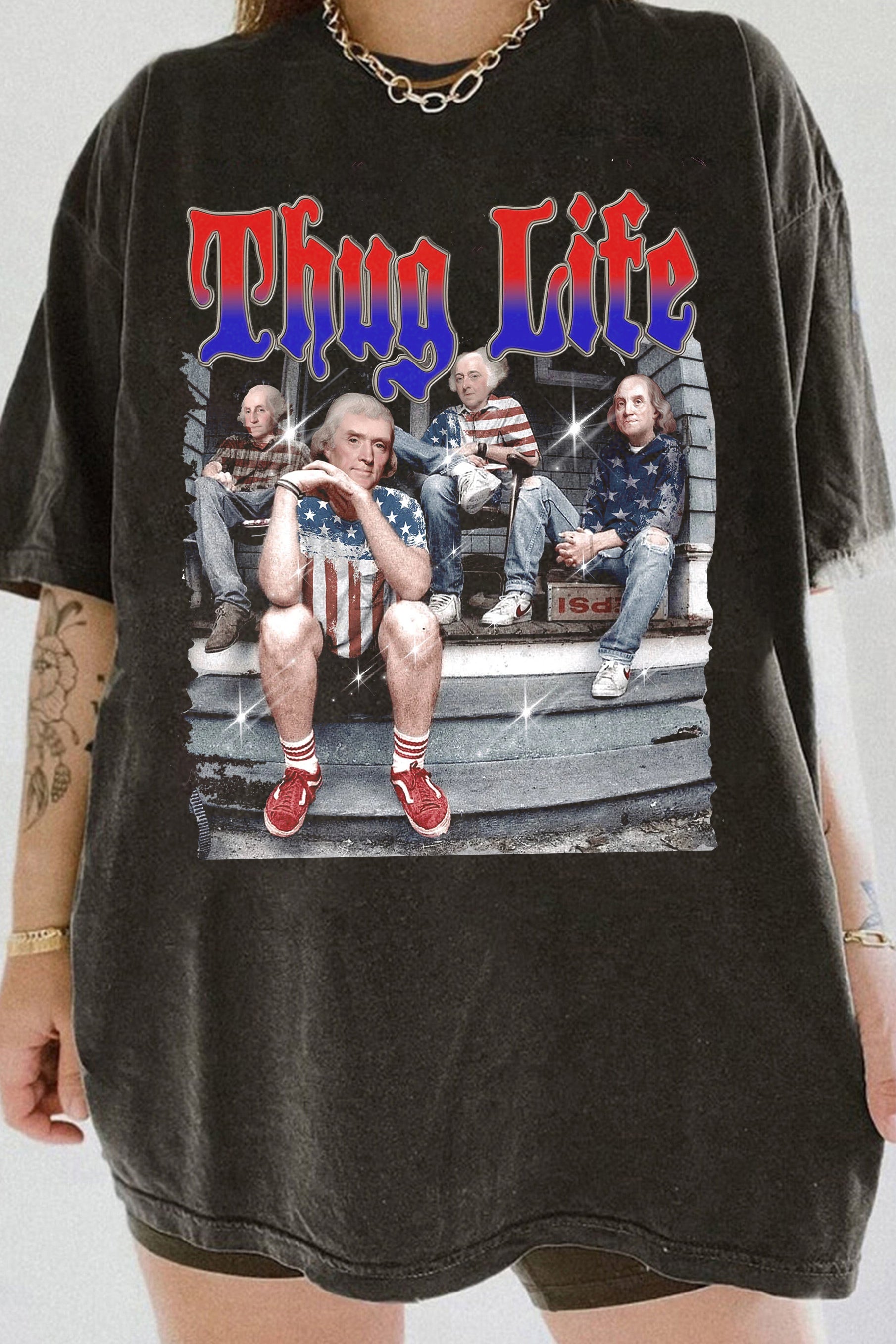 Thug Life American Patriotic 4th of July Tee For Women